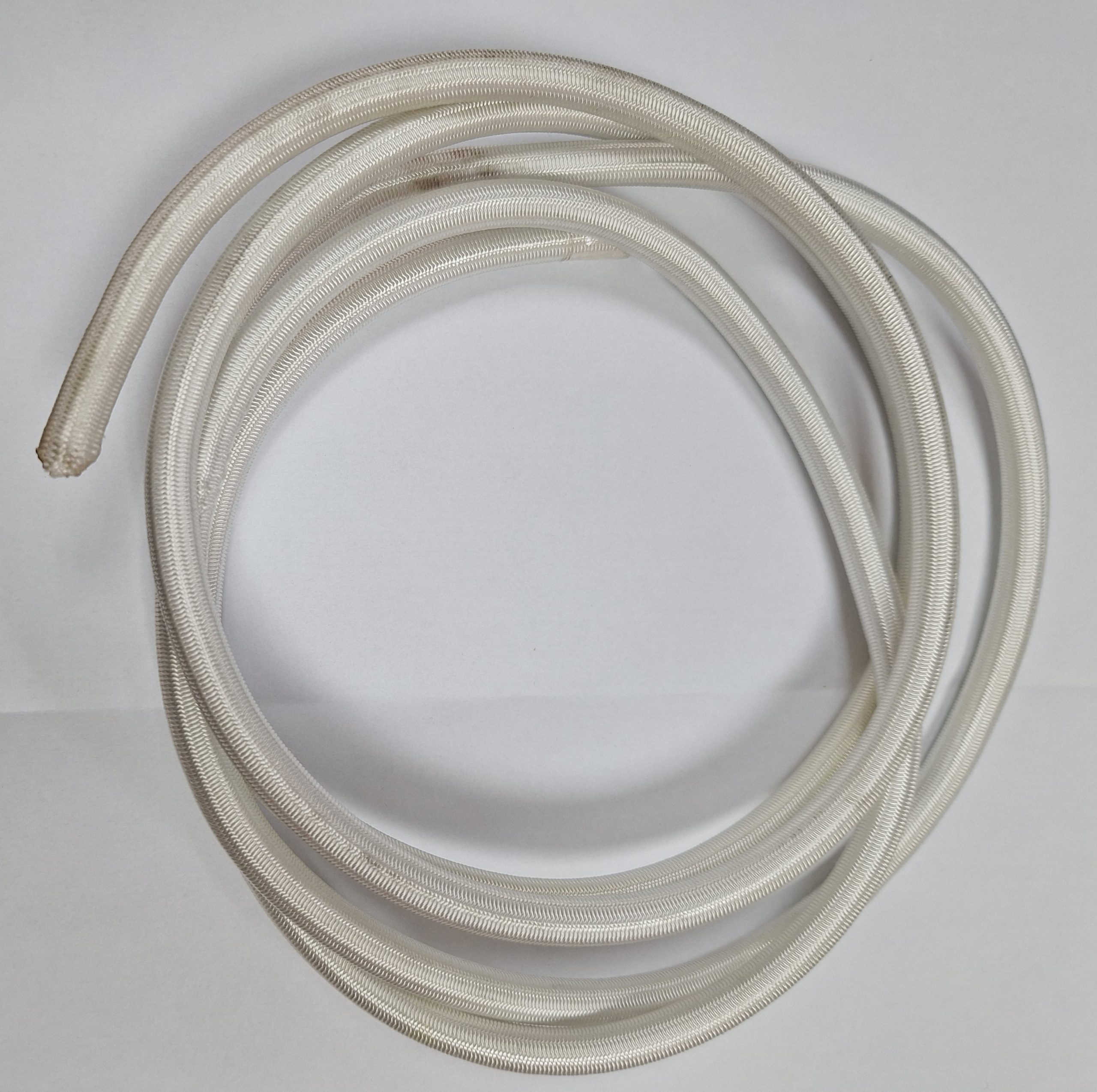 Elastična gumi vrv bele barve premera 10 mm za hitro in napeto pritrjevanje ponjav, reklamnih platen in šotorov. Cena v eur/m.