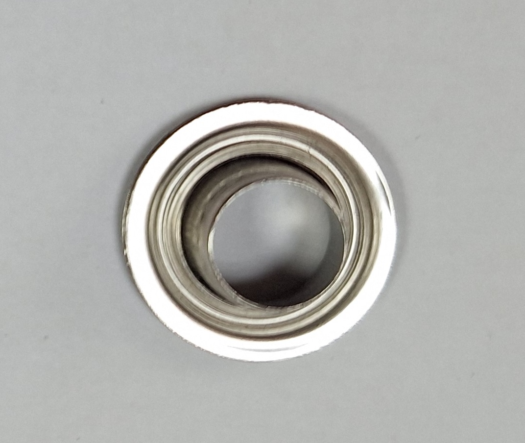 Nerjaveča rinčica premera 10 mm iz inox jekla. Idealna za trajno in estetsko zaščito odprtin v platnih, šotorih in ponjavah.